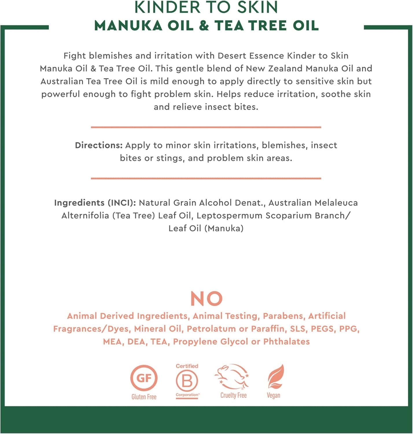 DESERT ESSENCE - Kinder to Skin Manuka Oil & Australian Tea Tree Oil - 4 fl oz (120 ml)