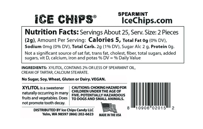 A hard candy made with Xylitol, an all natural sweetener, combined with natural flavors. ICE CHIPS has fewer calories than candy made with sugar.