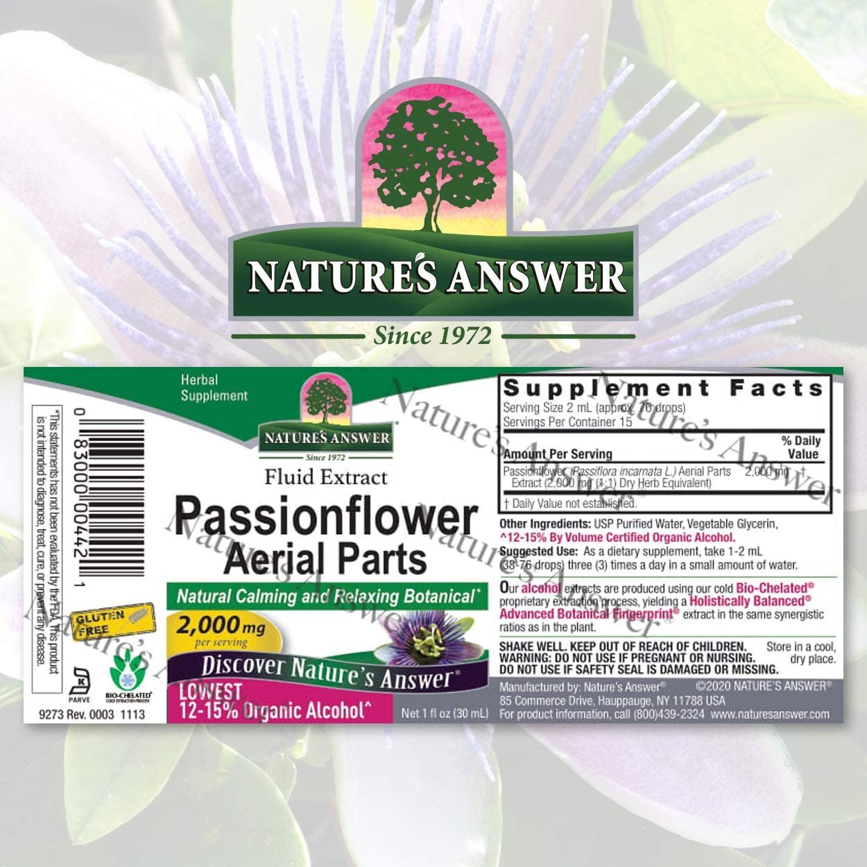 Nature’s Answer transforms this wonderful herb into a highly concentrated, alcohol-free Passionflower extract, delivering 2,000mg per serving to help you stay calm and relaxed.*