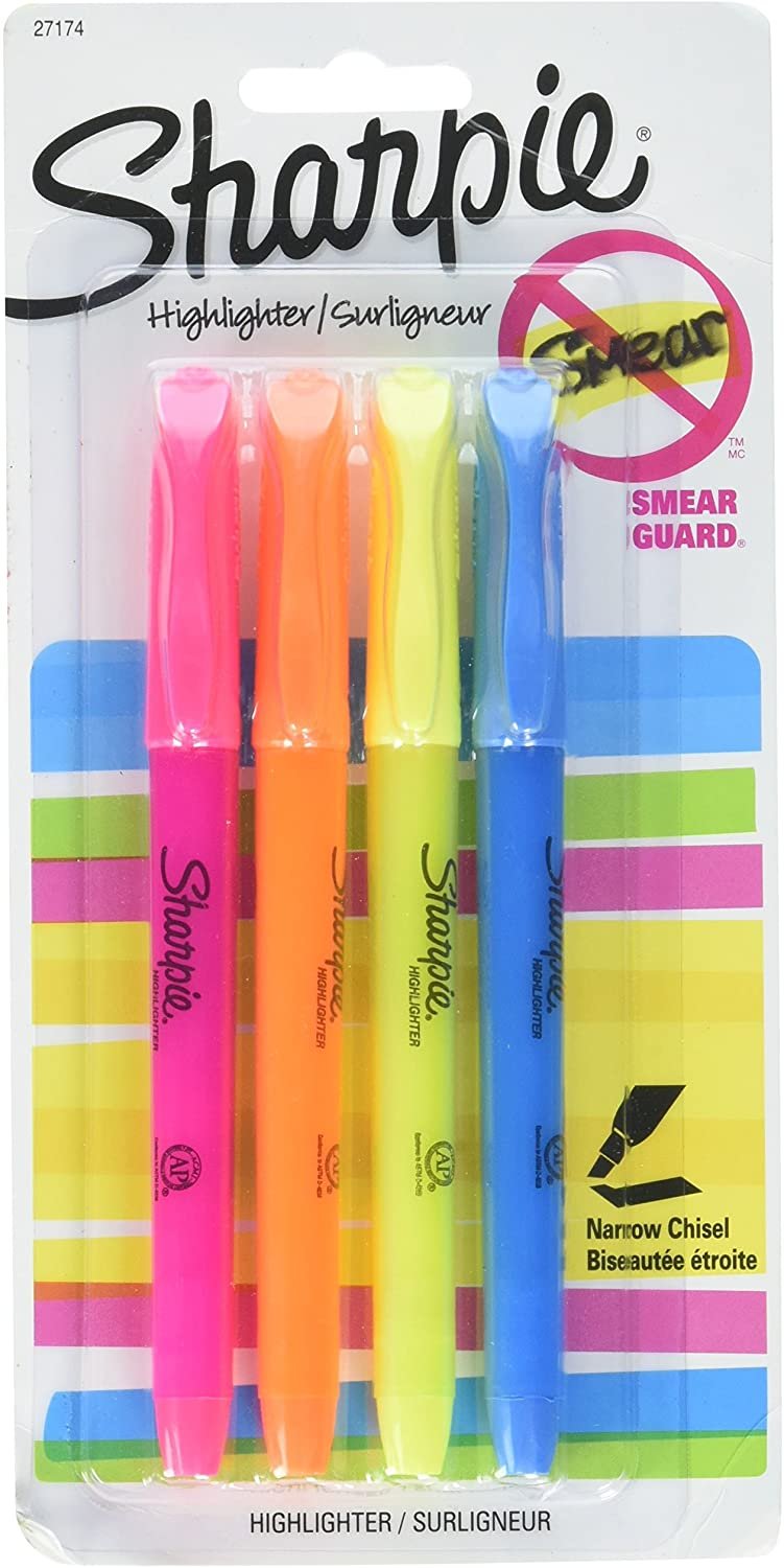 SHARPIE - Pocket Style Highlighters Chisel Tip Assorted Fluorescent - 4 Pack