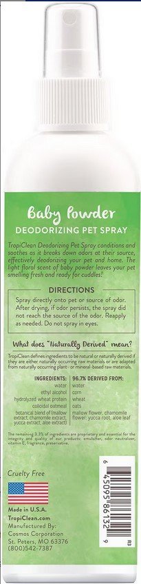 TROPICLEAN - Baby Powder Deodorizing Pet Spray - 8 fl oz (236 ml)
