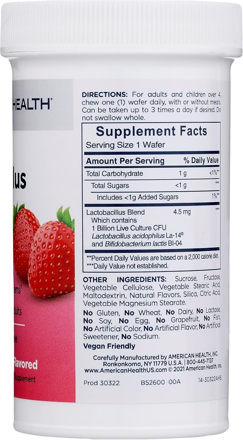 AMERICAN HEALTH - Chewable Acidophilus 1 Billion Natural Strawberry Flavor - 60 Chewable Wafers