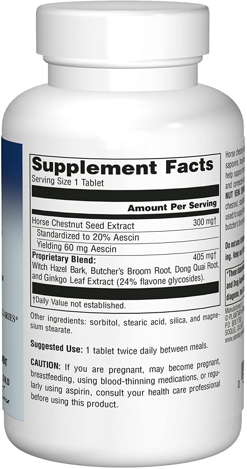 Horse chestnut is rich in saponins and flavones, which modern research has shown helps support the normal integrity of the vascular system and connective tissue. Planetary Herbals Horse Chestnut Vein Strength™ combines a concentrated extract of horse chestnut with other herbs used to support the vascular system, such as witch hazel, butcher's broom and ginkgo.