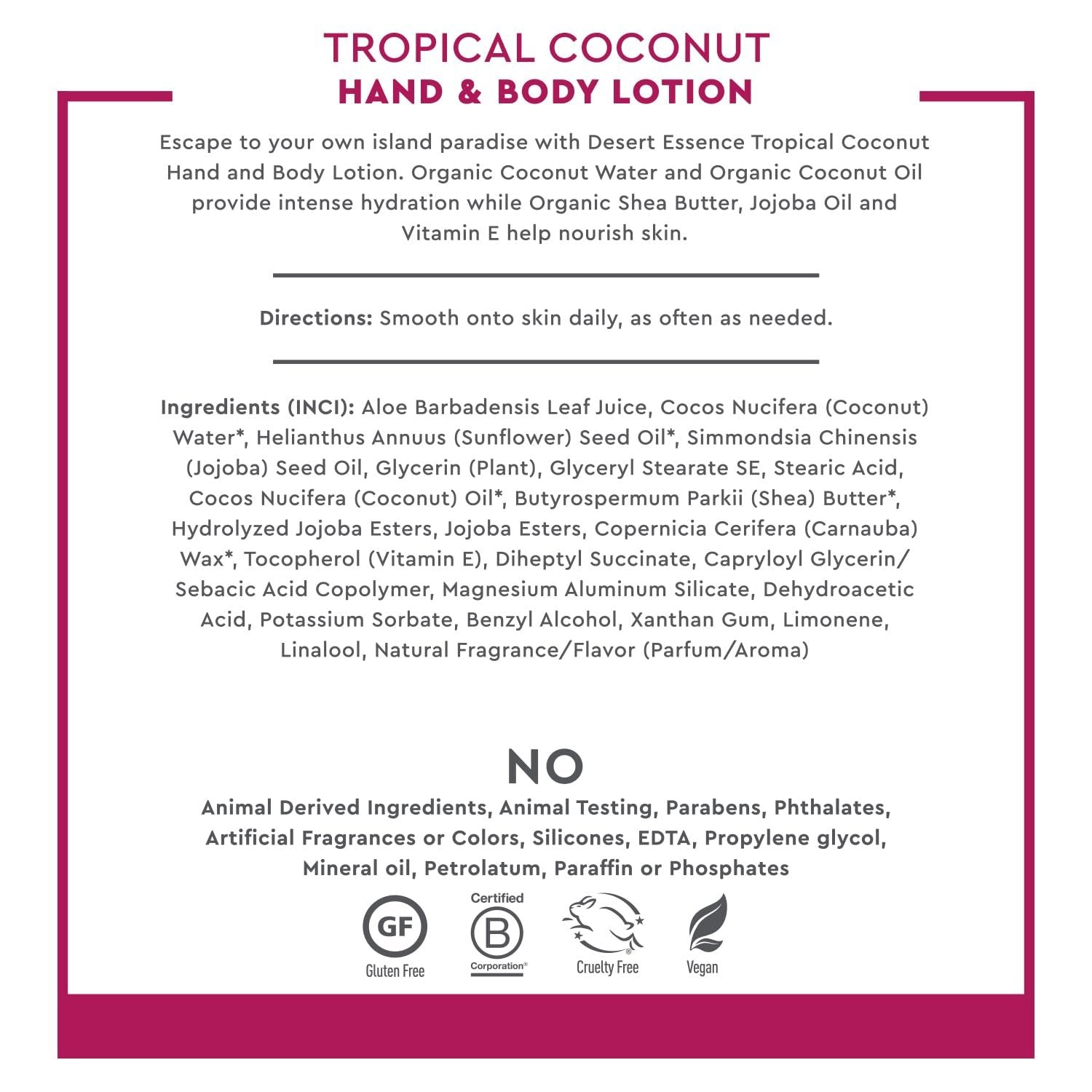 DESERT ESSENCE - Tropical Coconut Hand and Body Lotion - 8 fl. oz. (237 ml)